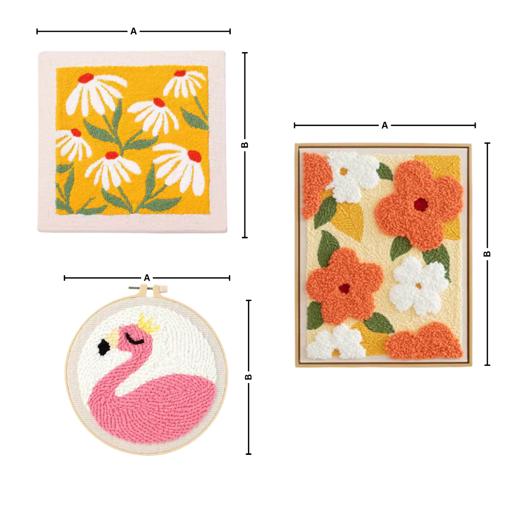 Explore a variety of beautiful patterns that match your personal taste and skill level. The Tranquil Thread Punch Needle Kit offers multiple design options of floral motifs including floral motifs llike; Blue Flower, Floral, Orange Flower, Blossom, Lily, and Chamomile,as well as unique designs such as Flamingo Pattern and Lady Pattern, allowing you to choose a project that speaks to you. Each design provides a unique creative challenge, making it easy to find inspiration and stay engaged with your craft. Whether you prefer minimalist styles or intricate compositions, there’s a perfect pattern waiting for you.